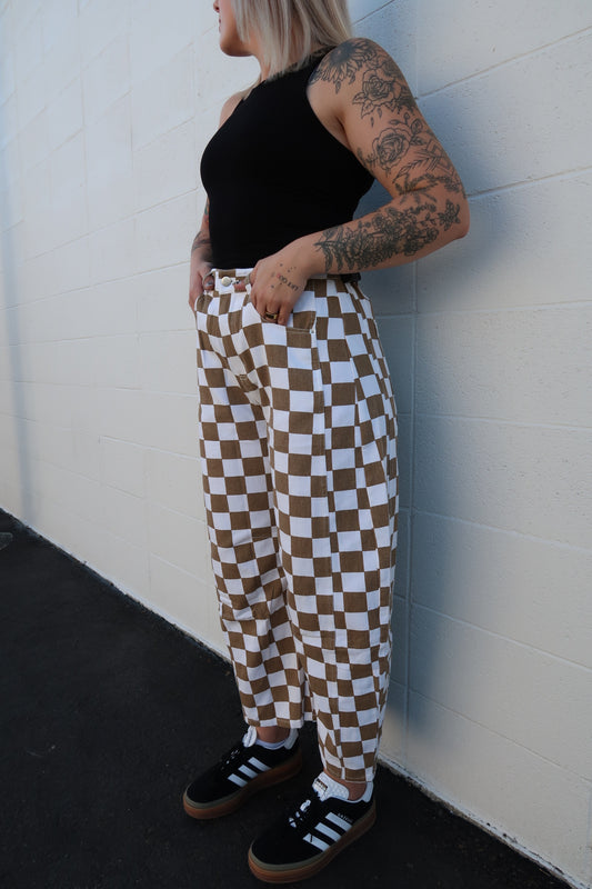 Checkered Barrel Denim Pants